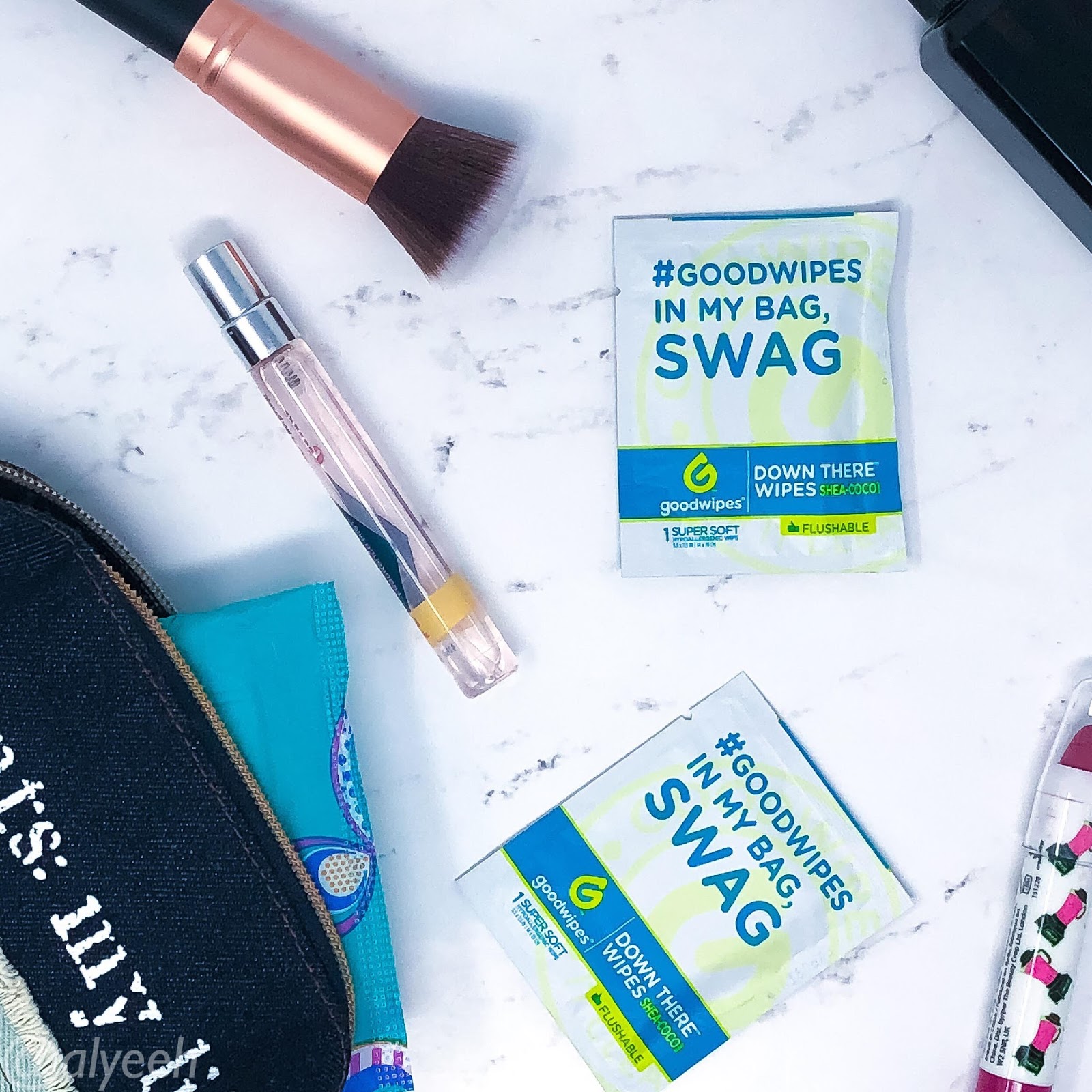 I love these wipes! Goodwipes help keep you fresh, free of odor and eliminates any bacteria “down there." These are perfect for whenever you’re away from home and need to use a public restroom. Sometimes as a last resort, you might need to use a questionable bathroom that may or may not have any toilet paper or looks like its never been cleaned, however having these handy gives you precious peace of mind. The packets are small, discreet, quiet and fit into any pocket, wallet, purse, or even your bra. Another pinch to use them in is eliminating post-workout pit stench.